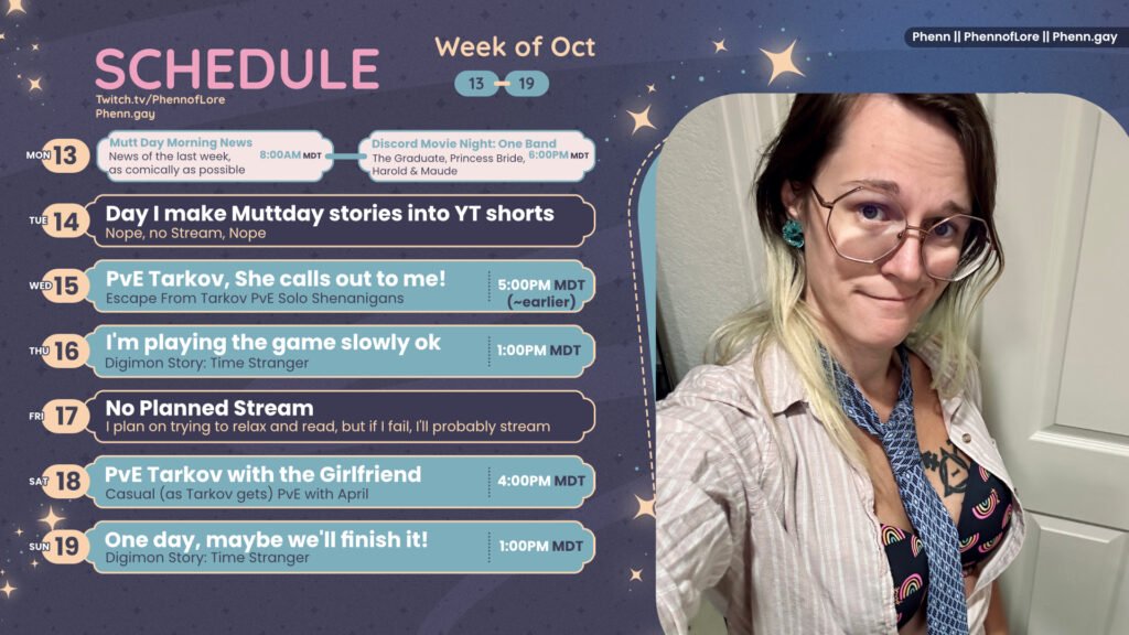 In fact, I could be live, right now! Of course if you don’t see me on the embed bellow, scroll down a little further to see a mostly probably correct stream calendar.
